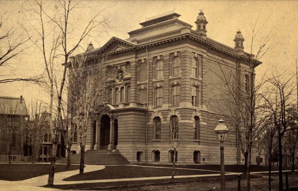 With a rapidly growing population, the city decided in 1870 that the few rooms it occupied in the state Capitol building were no longer adequate. Despite criticism over costs, construction began on a new stone building designed by architect Henry T. Brush in the then-popular Second Empire style. Though scaled back from its original plans, one extravagance remained: the central reading room.